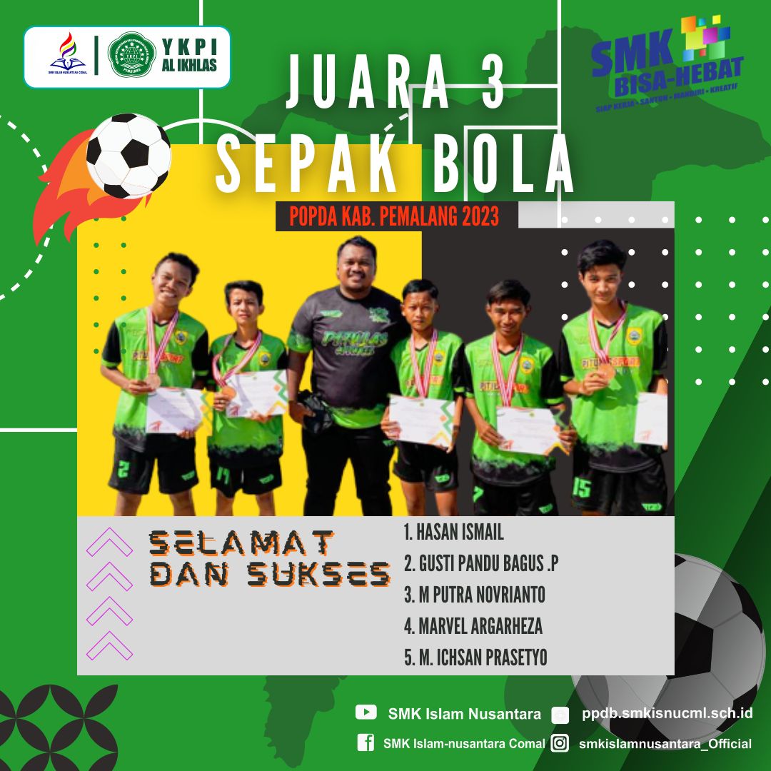 Selamat atas prestasi yang diraih tim sepakbola juara 3 popda kab. Pemalang 2023